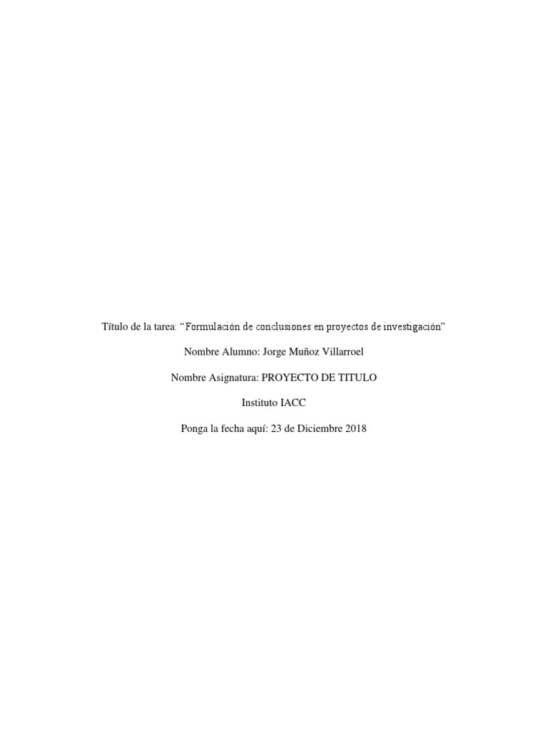 Título de la tarea: “Formulación de conclusiones en proyectos de investigación”