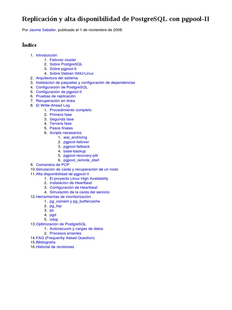 GNU/Linux. Dicho clúster ofrece capacidades de replicación, balanceo de carga y un pool de conexiones, y es