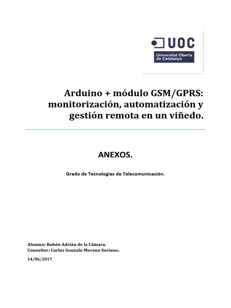 Arduino + módulo GSM/GPRS: monitorización, automatización y gestión 2017