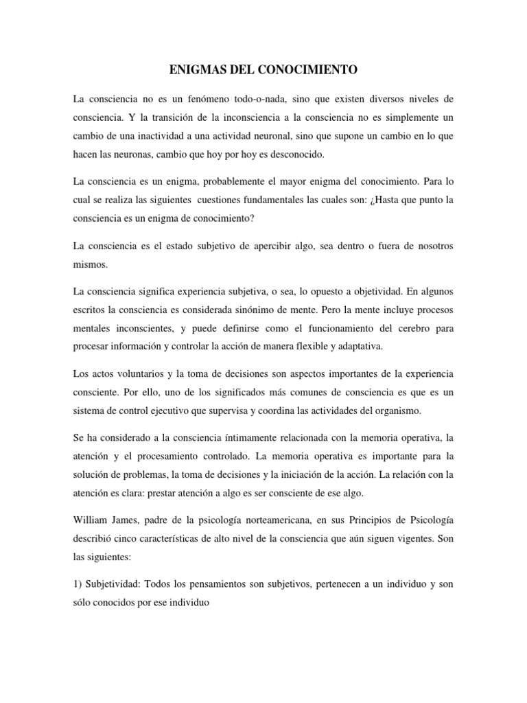 La consciencia es un enigma, probablemente el mayor enigma del conocimiento. Para lo