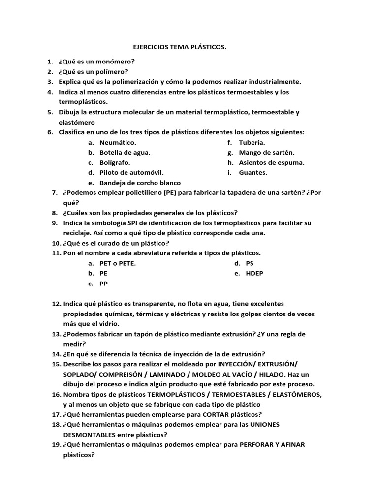 EJERCICIOS TEMA PLÁSTICOS.