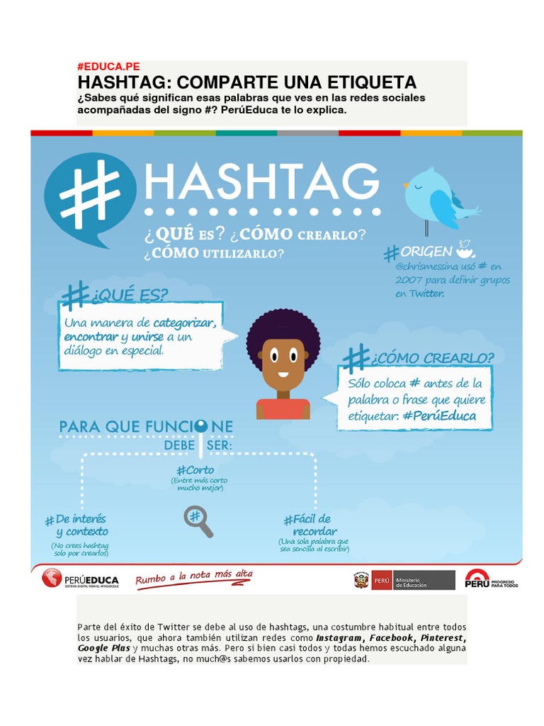 ejemplo: #PERUEDUCA, así te asegurarás de que los resultados sean relevantes a tu