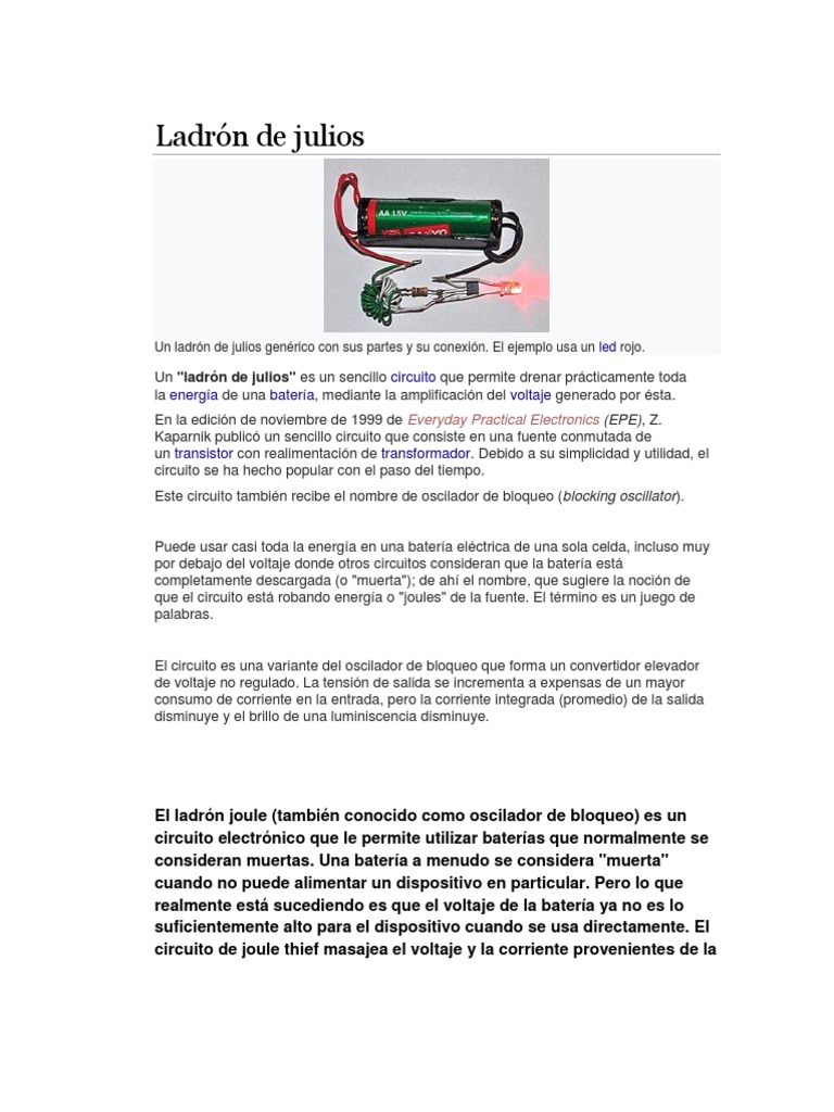 Un "ladrón de julios" es un sencillo circuito que permite drenar prácticamente toda