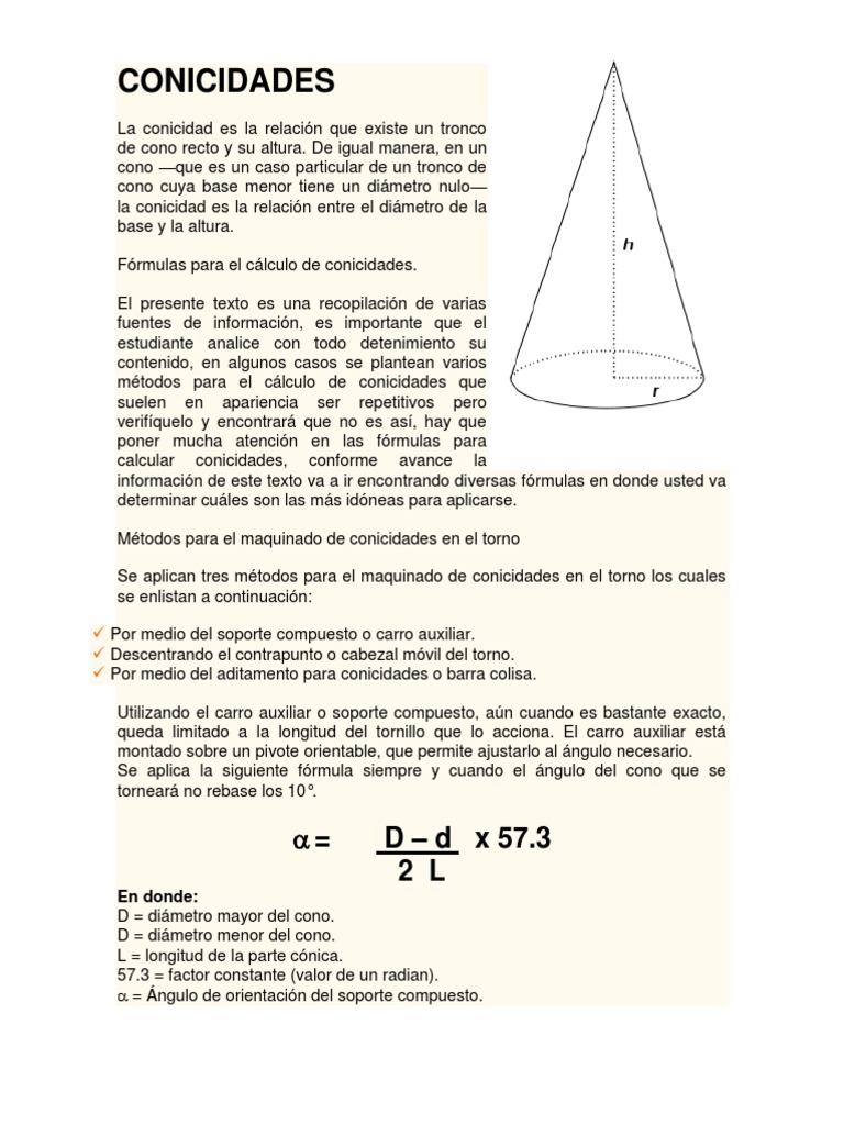 Fórmulas para el cálculo de conicidades.