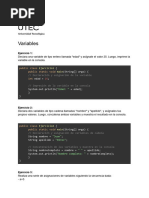 2. Dentro de la clase “Ejercicio1”, crear las siguientes variables según su