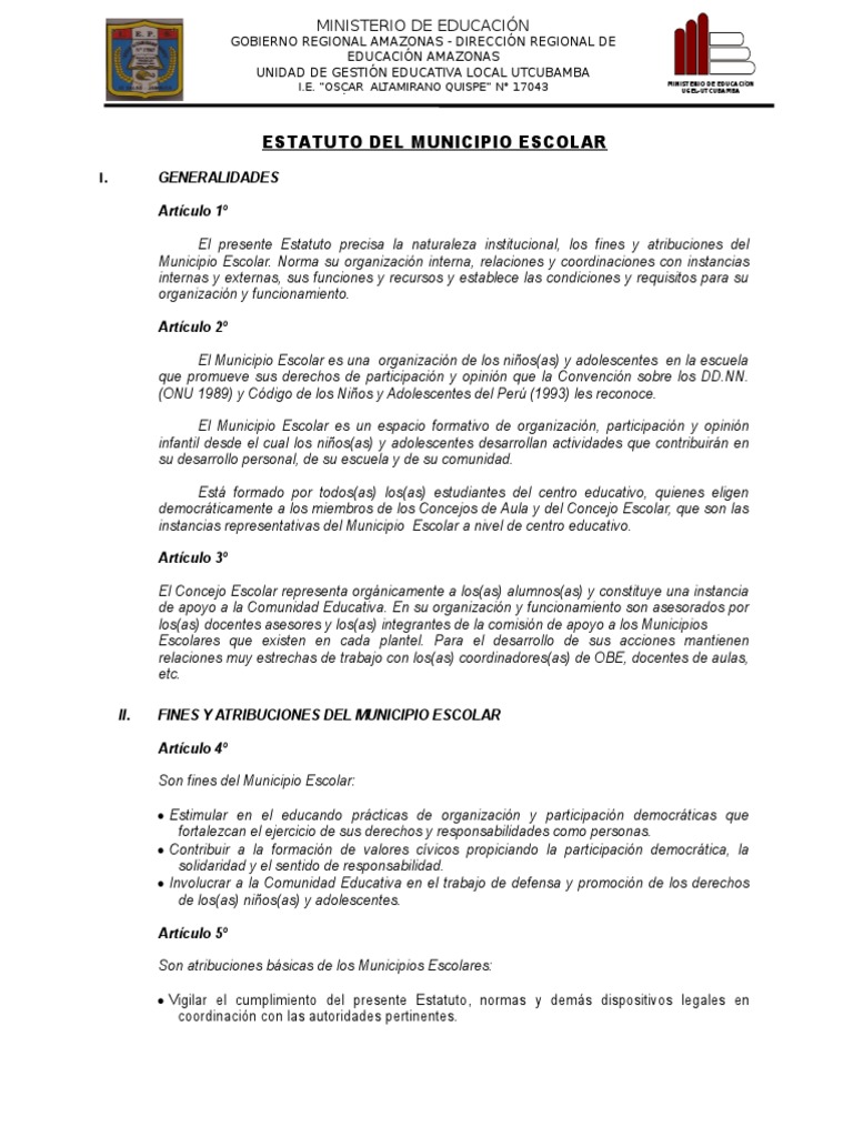 ESTATUTO DEL MUNICIPIO ESCOLAR