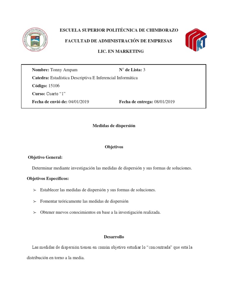 Establecer las medidas de dispersión y sus formas de soluciones.