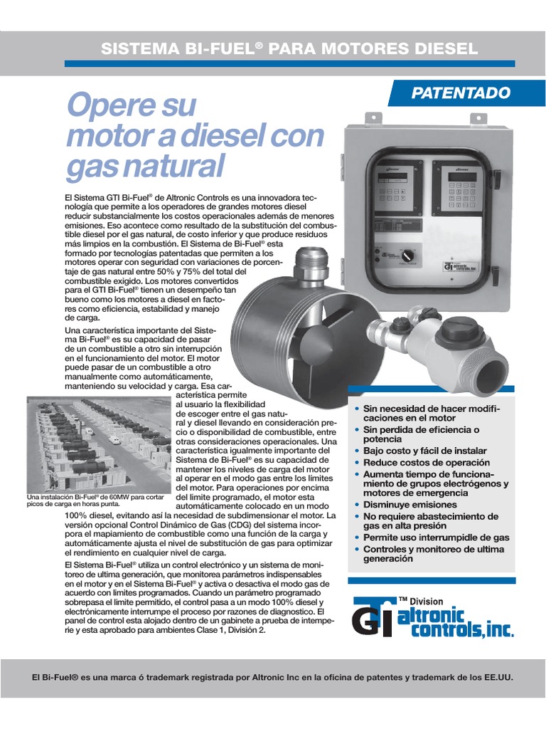 El Sistema GTI Bi-Fuel® de Altronic Controls es una innovadora tec-