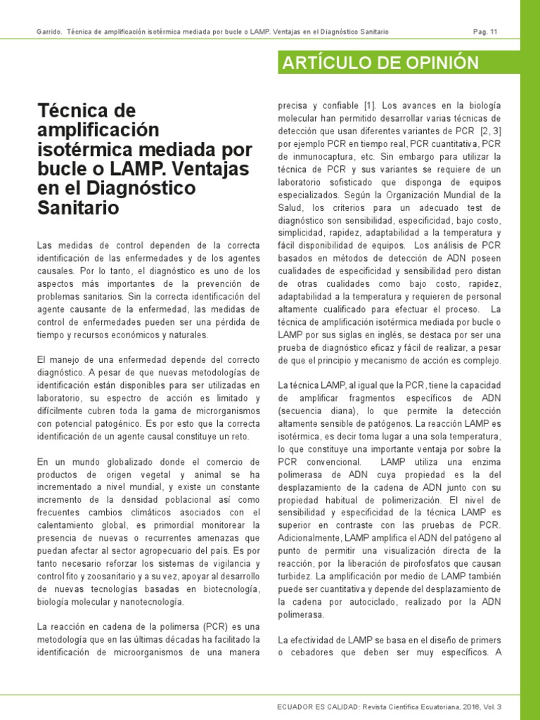 Pag. 12 Garrido. Técnica de amplificación isotérmica mediada por bucle o LAMP. Ventajas en el Diagnóstico Sanitario