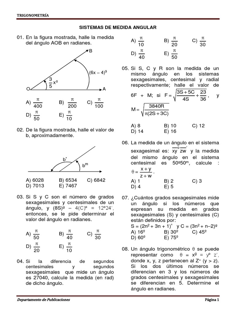 03. Si S y C son el número de grados 07. ¿Cuántos grados sexagesimales mide