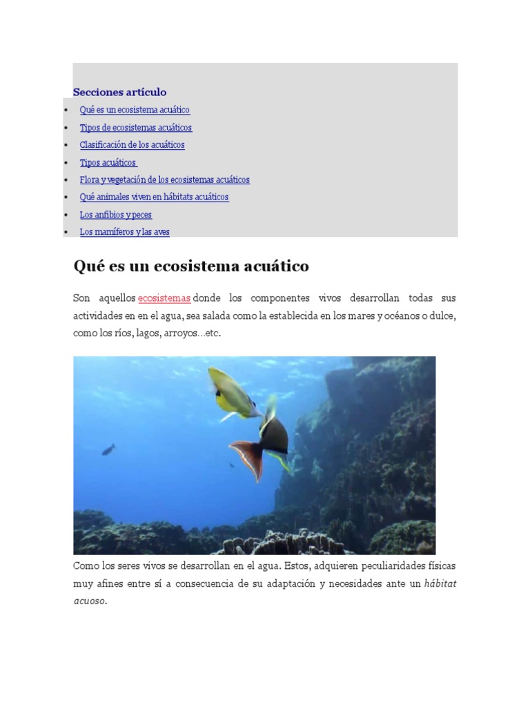 los sistemas de agua dulce como a los oceánico). Siendo los más importantes, el