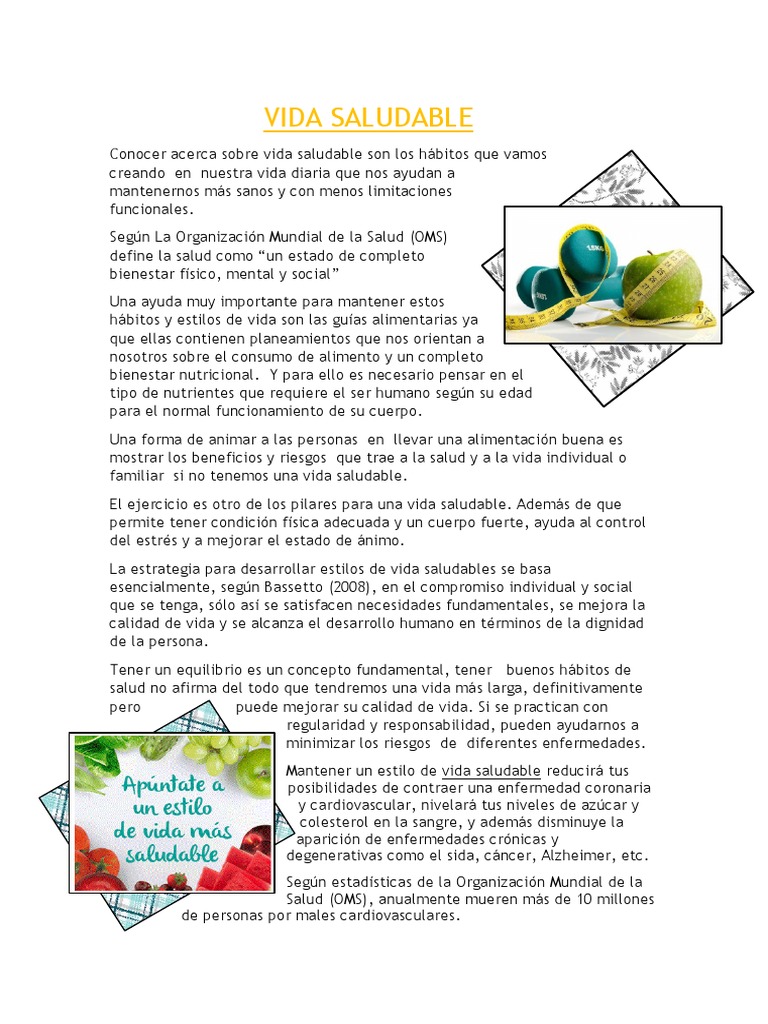 Conocer acerca sobre vida saludable son los hábitos que vamos