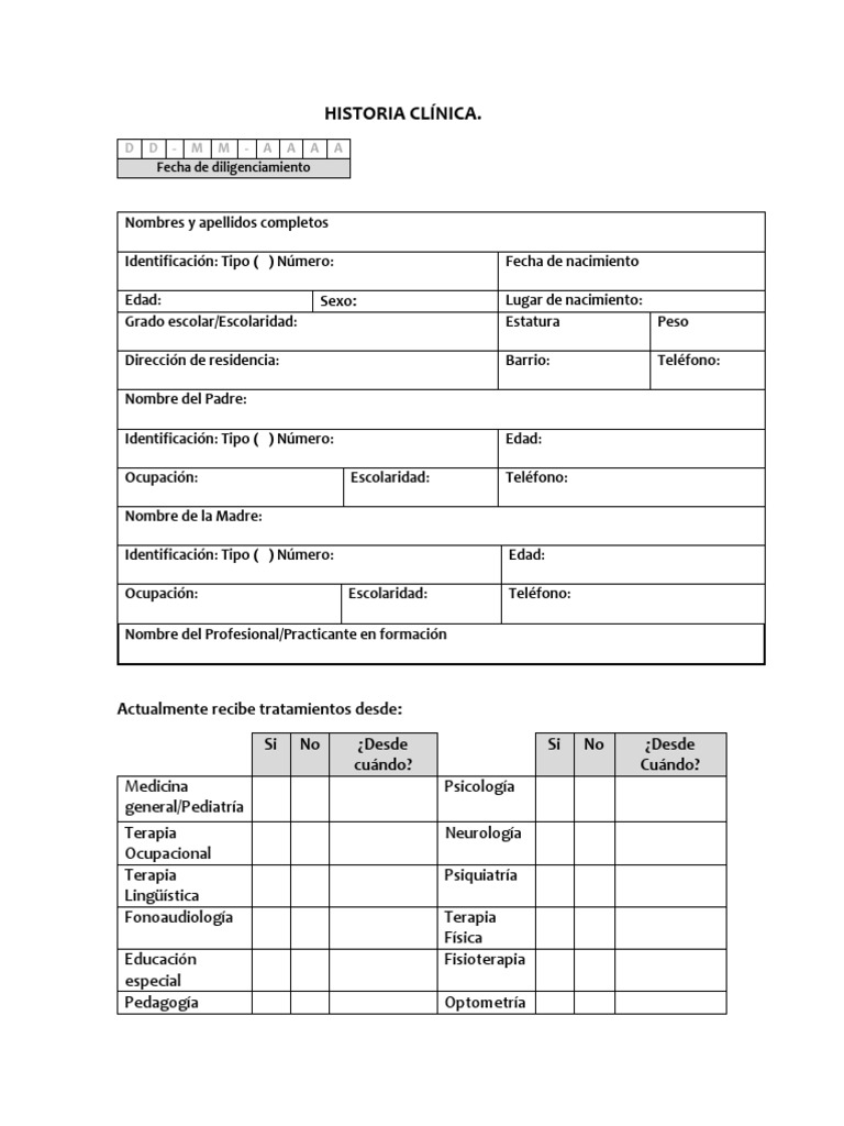 Terapias de apoyo. No ___ Sí ___ ¿Cuándo? _________________________________