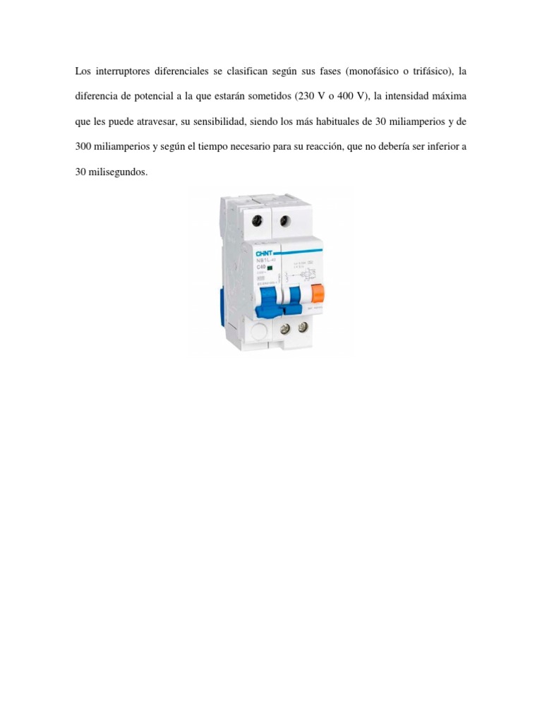 Los interruptores diferenciales se clasifican según sus fases (monofásico o trifásico), la