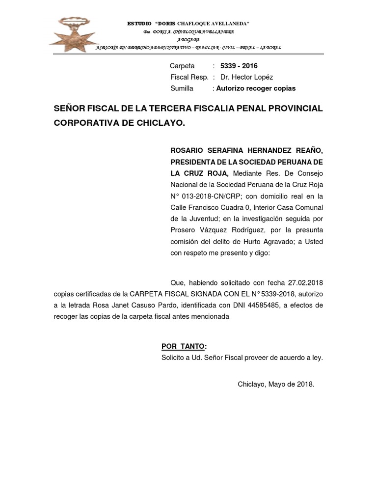 recoger las copias de la carpeta fiscal antes mencionada