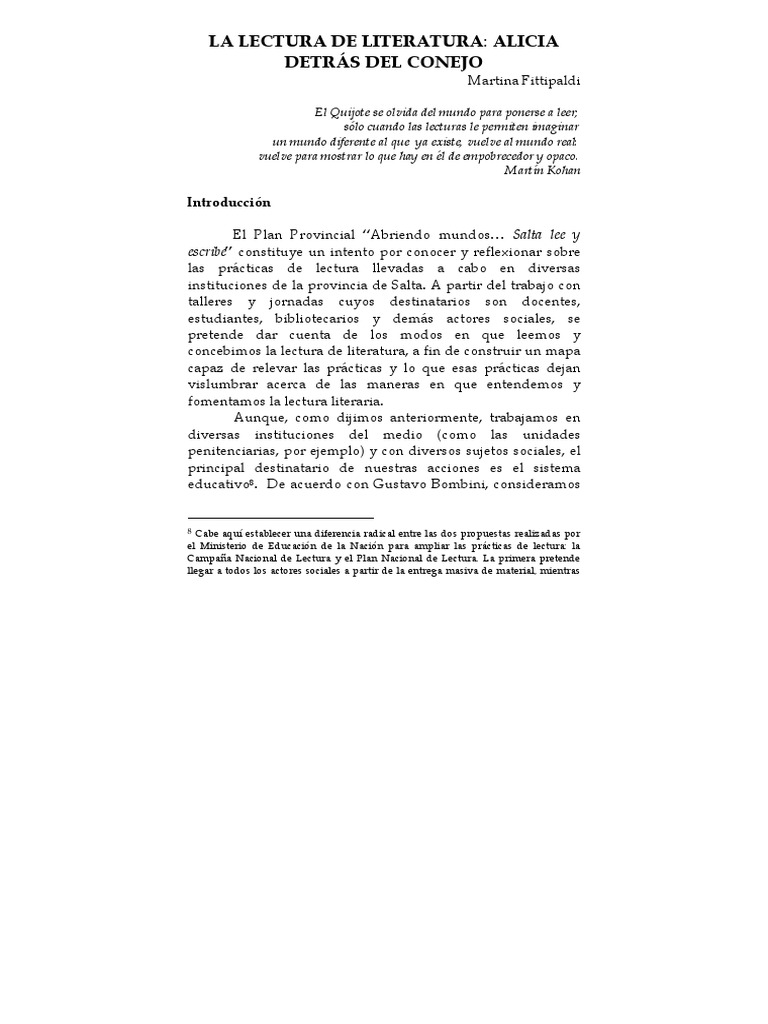 este apartado: ¿Por qué la literatura? Porque como Alicia, en
