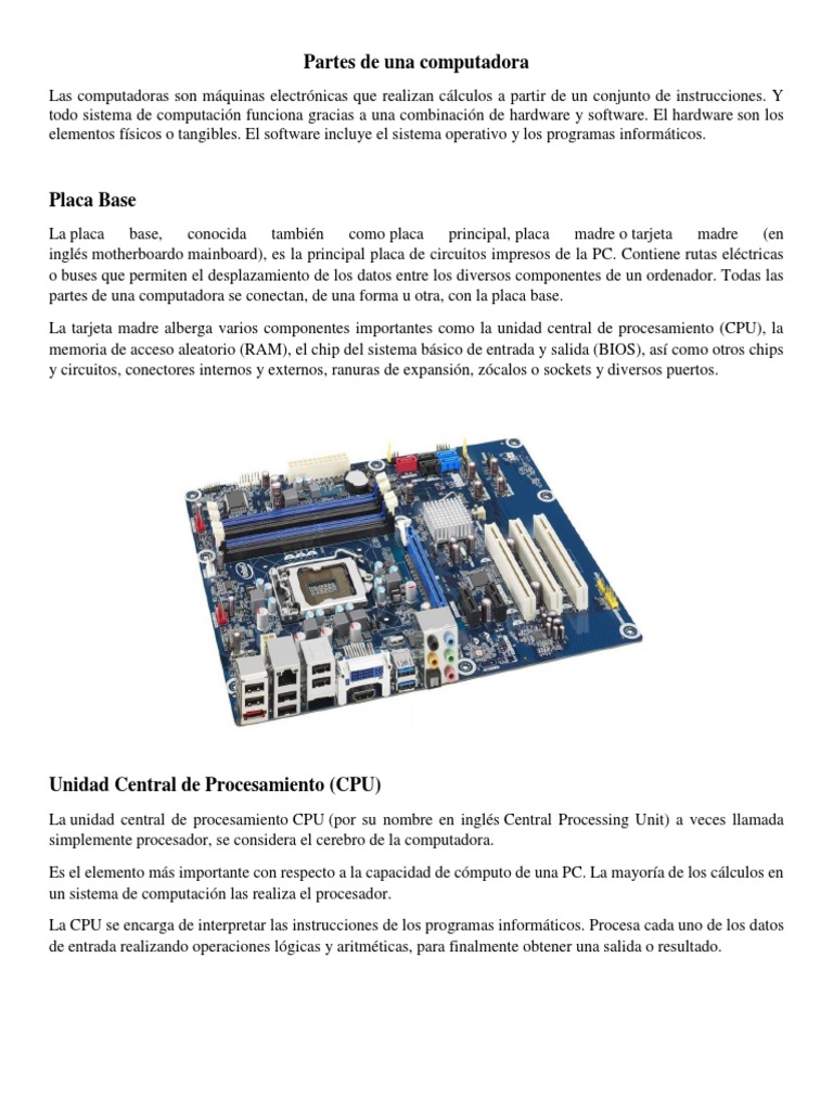 partes de una computadora se conectan, de una forma u otra, con la placa base.