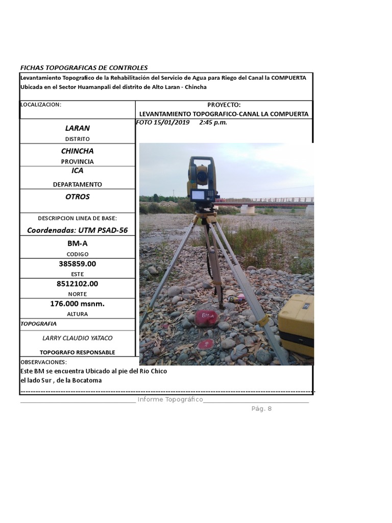 Levantamiento Topografico de la Rehabilitación del Servicio de Agua para Riego del Canal la COMPUERTA