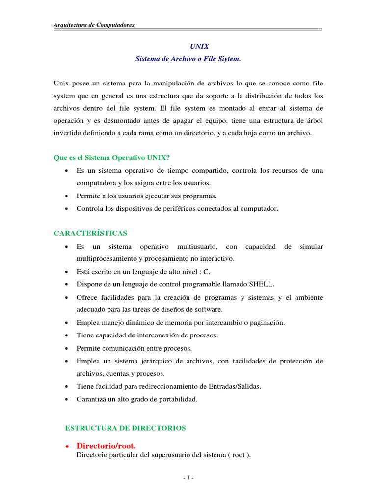 Unix posee un sistema para la manipulación de archivos lo que se conoce como file