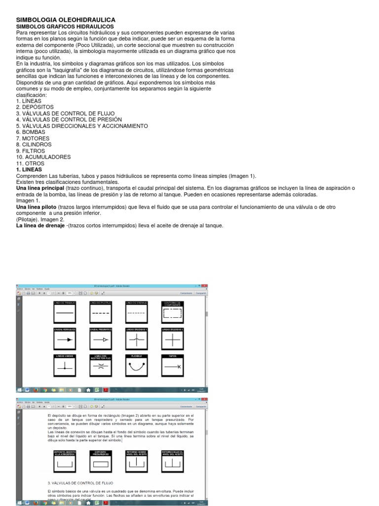 Para representar Los circuitos hidráulicos y sus componentes pueden expresarse de varias