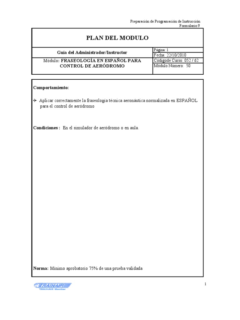 MODULO: FRASEOLOGIA ESPAÑOL PARA CONTROL DE AERODROMOS