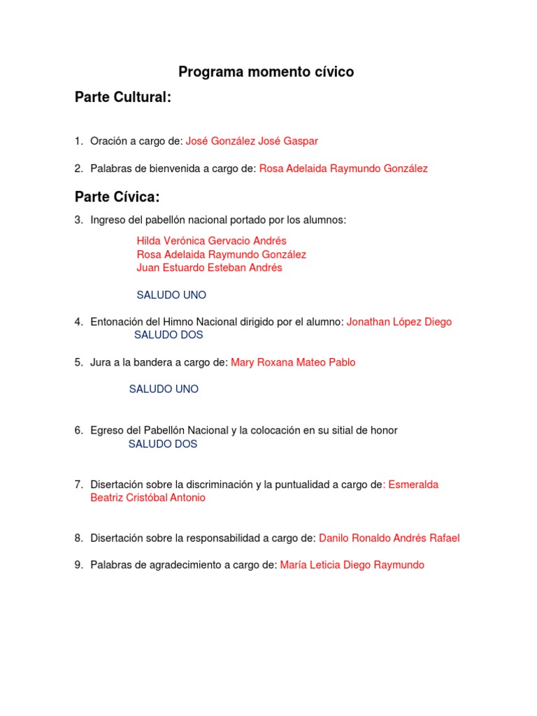5. Jura a la bandera a cargo de: Mary Roxana Mateo Pablo