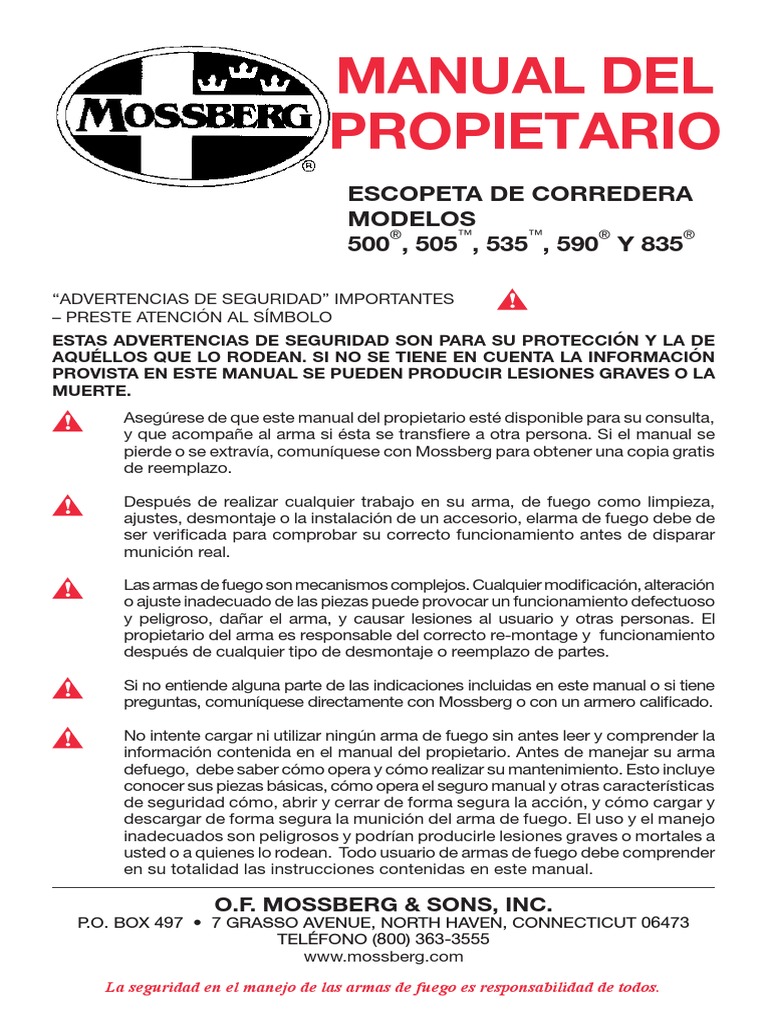 Si cualquiera de los manuales se pierde, solicite un reemplazo gratuito de Mossberg.