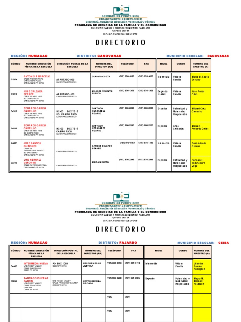 Directorio Consejeras - Region Humacao