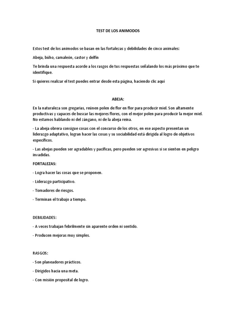 Estos test de los animodos se basan en las fortalezas y debilidades de cinco animales: