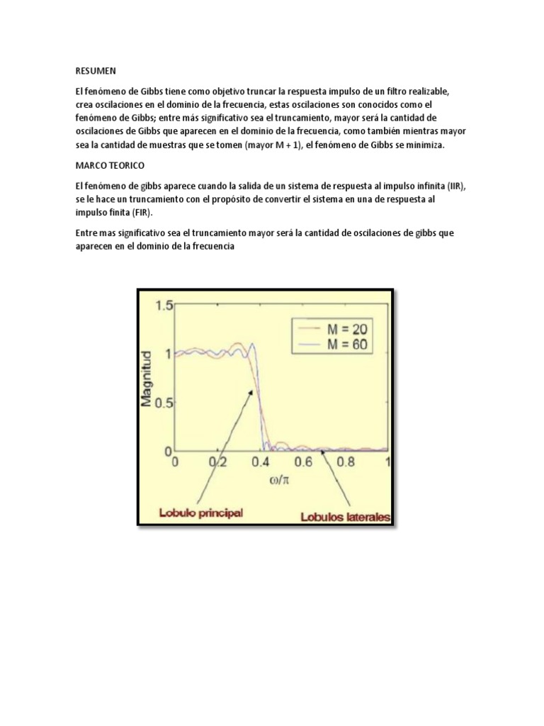 El fenómeno de Gibbs tiene como objetivo truncar la respuesta impulso de un filtro realizable,