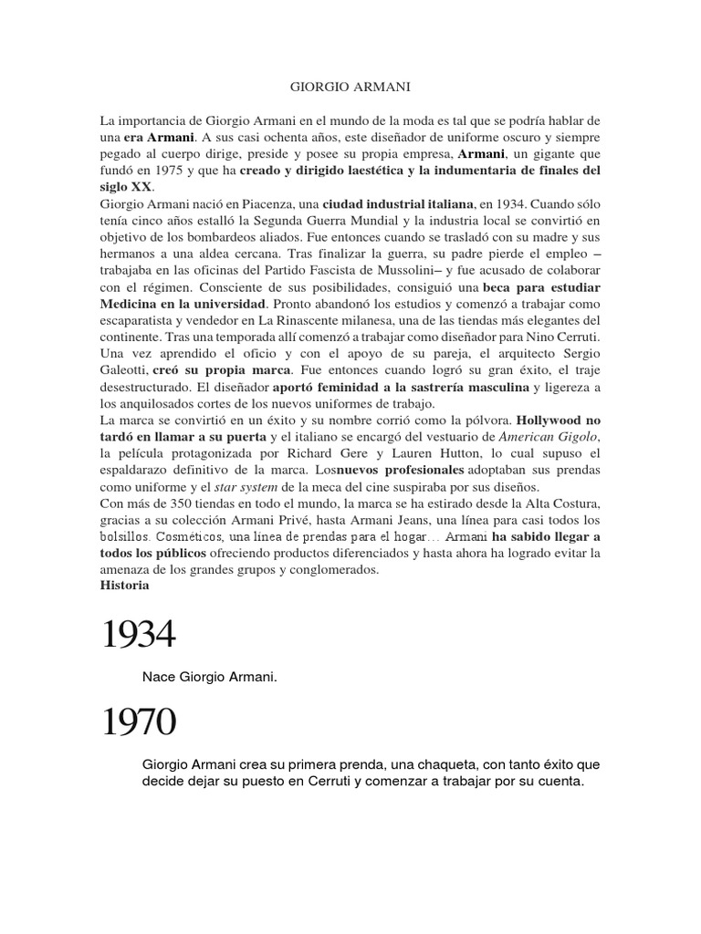 Giorgio Armani nació en Piacenza, una ciudad industrial italiana, en 1934. Cuando sólo