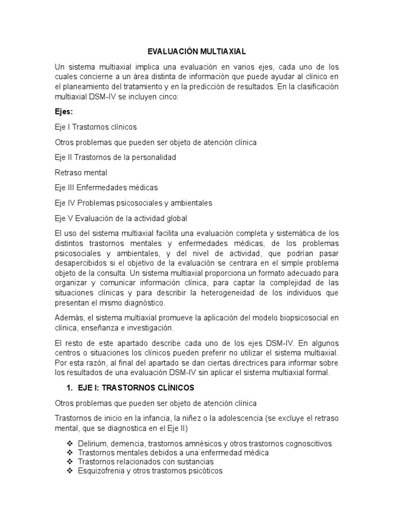 El resto de este apartado describe cada uno de los ejes DSM-IV. En algunos
