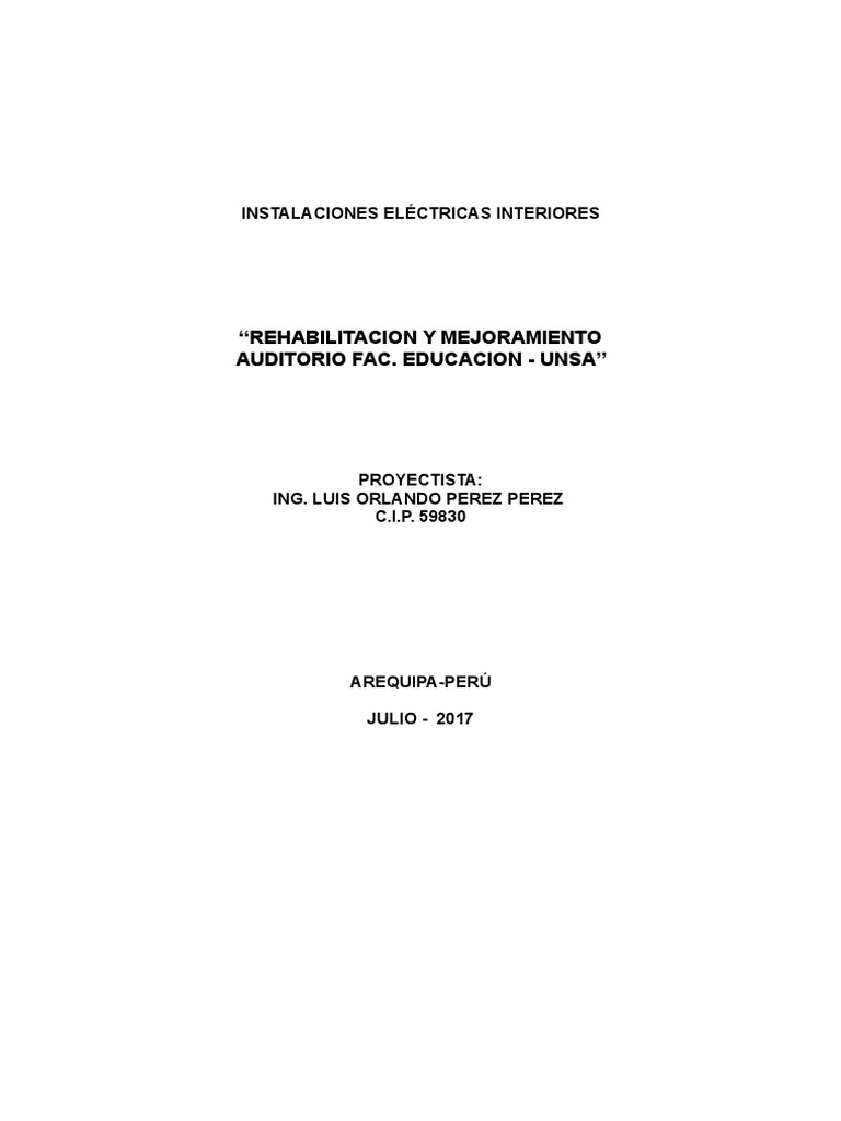 eléctricas para el proyecto de “REHABILITACION Y