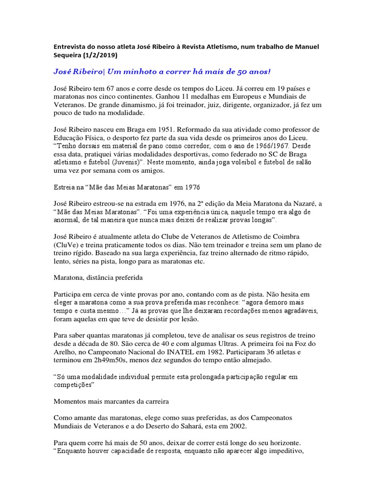 maratonas nos cinco continentes. Ganhou 11 medalhas em Europeus e Mundiais de