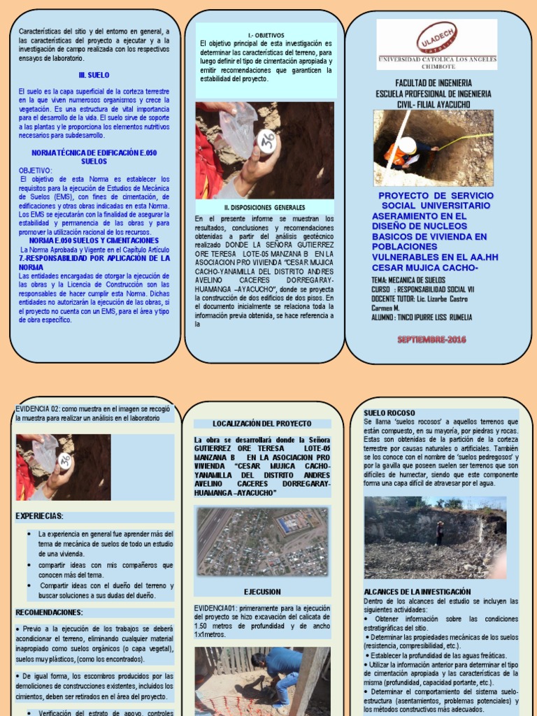 del proyecto se hizo excavación del calicata de Obtener información sobre las condiciones