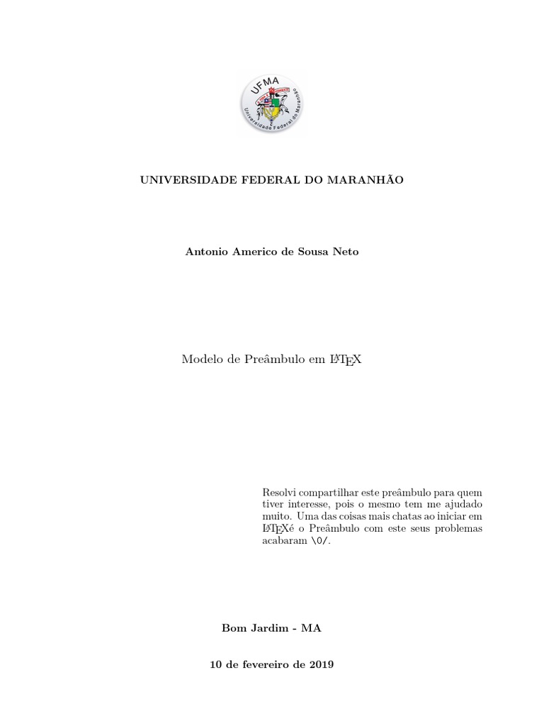 Resolvi compartilhar este preâmbulo para quem tiver interesse, pois o mesmo tem me ajudado muito. Uma das coisas mais chatas ao iniciar em L A T E Xé o Preâmbulo com este seus problemas acabaram \0/.