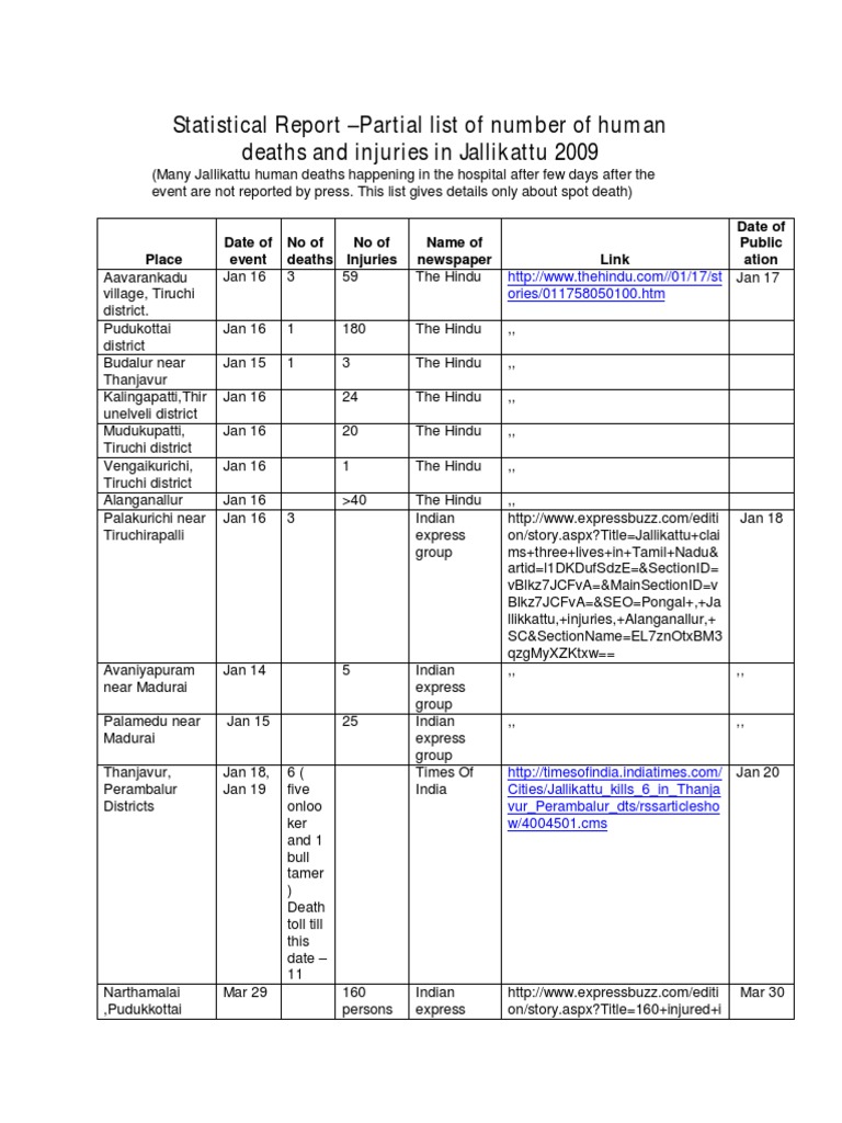 deaths and injuries in Jallikattu 2009