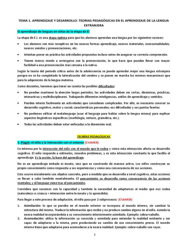 1. Piaget: el niño y la interacción con el entorno (EXAMEN)