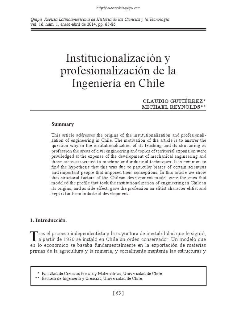 Institucionalización y profesionalización de la Ingeniería en Chile 65