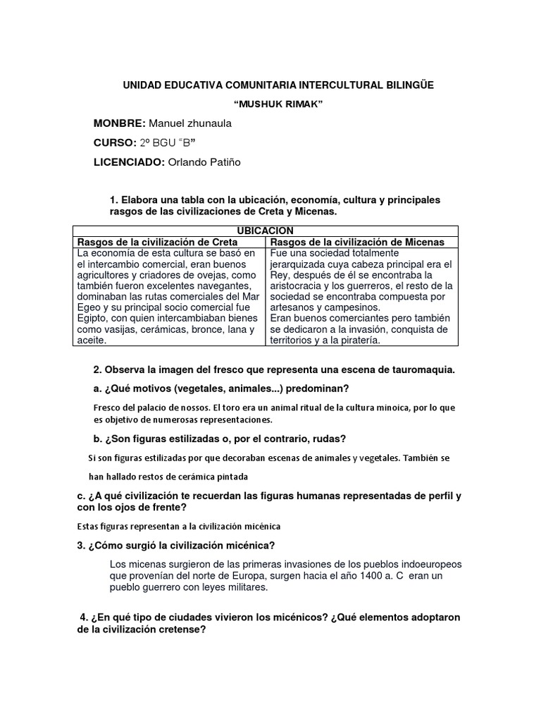 rasgos de las civilizaciones de Creta y Micenas.