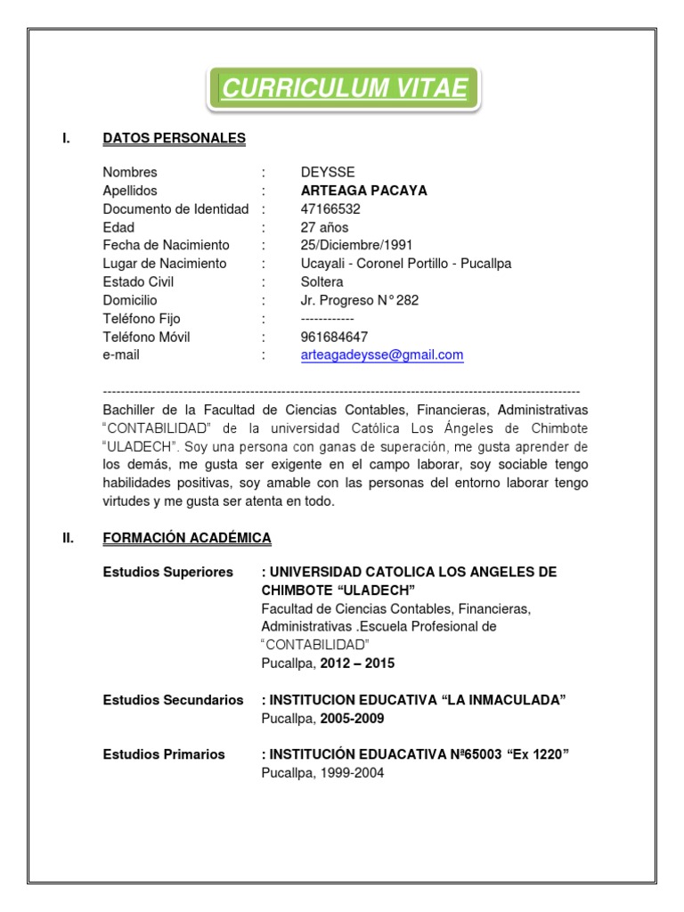 “ULADECH”. Soy una persona con ganas de superación, me gusta aprender de