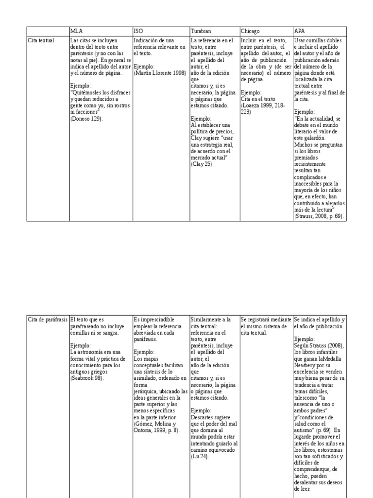 Cita de paráfrasis El texto que es Es imprescindible Similarmente a la Se registrará mediante Se indica el apellido y