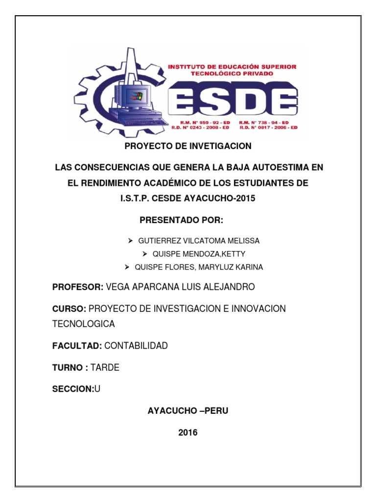 La autoestima en los estudiantes del I.S.T.P CESDE Ayacucho es un tema