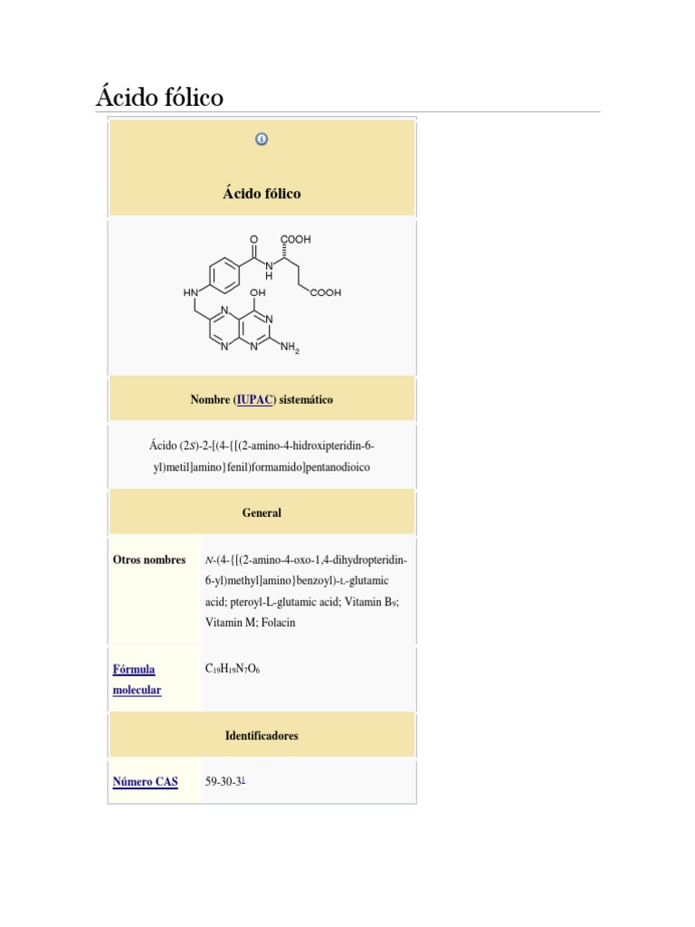 El ácido fólico, folacina o ácido pteroil-L-glutámico (la formaaniónica se llama folato),