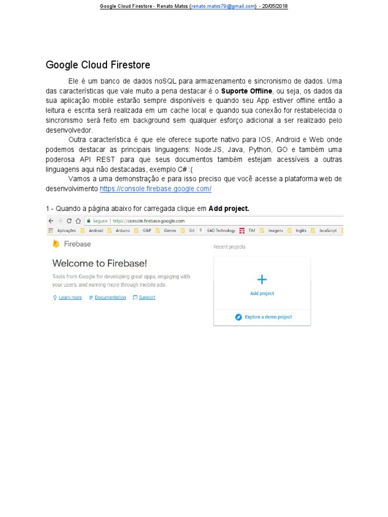 Google Cloud Firestore - Renato Matos (renato.matos79@gmail.com) - 20/05/2018