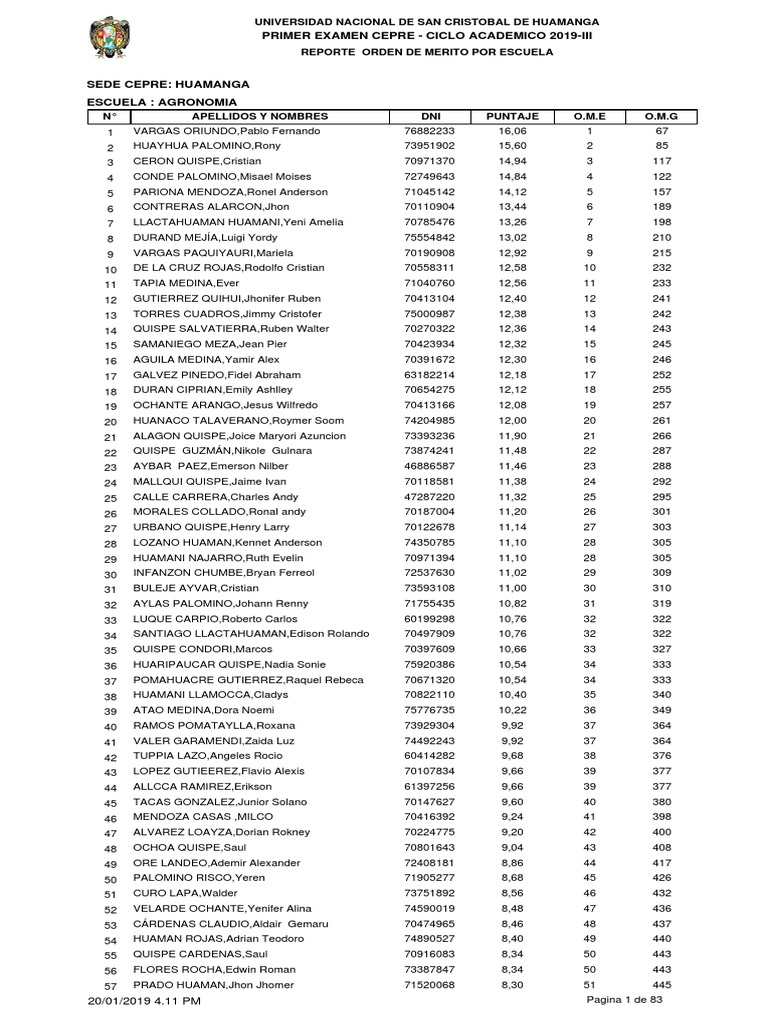 57 PRADO HUAMAN,Jhon Jhomer 71520068 8,30 51 445
