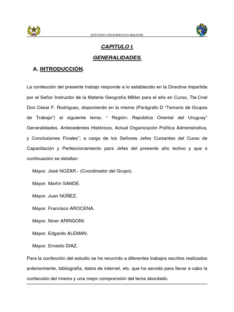 de Trabajo”) el siguiente tema: “ Región: República Oriental del Uruguay”