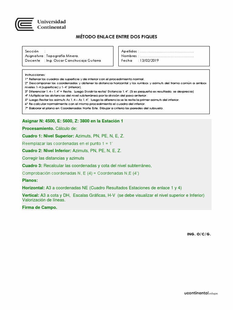 Asignatura : Topografía Minera. Nombres : ……………………………………….