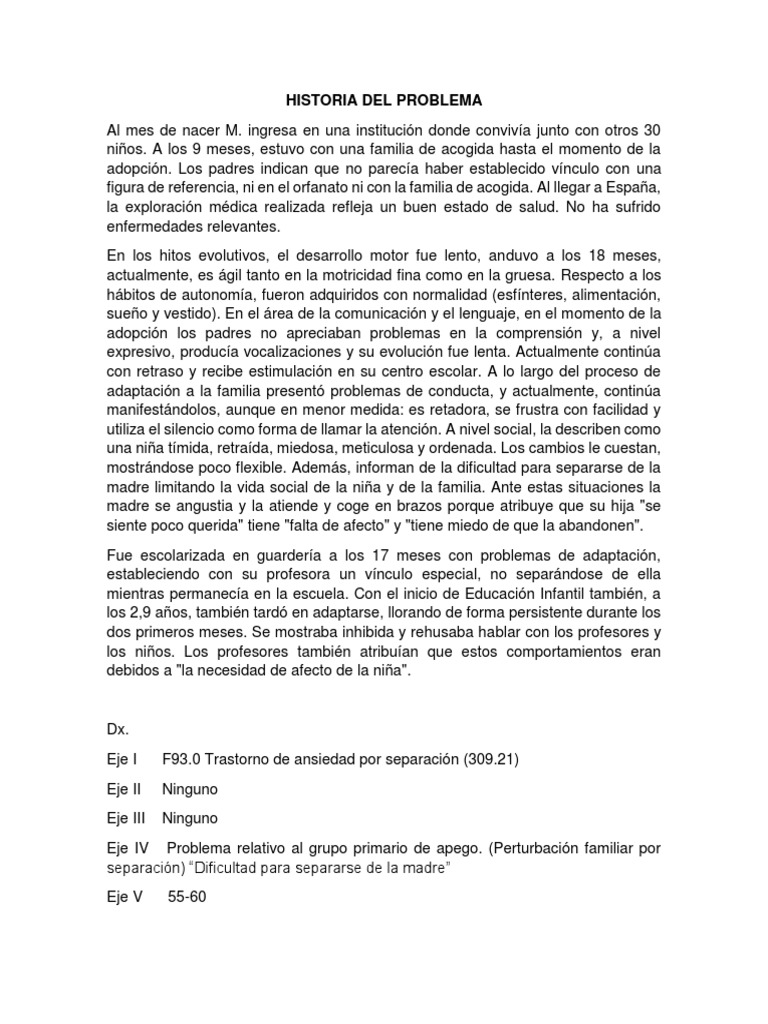 Eje I F93.0 Trastorno de ansiedad por separación (309.21)