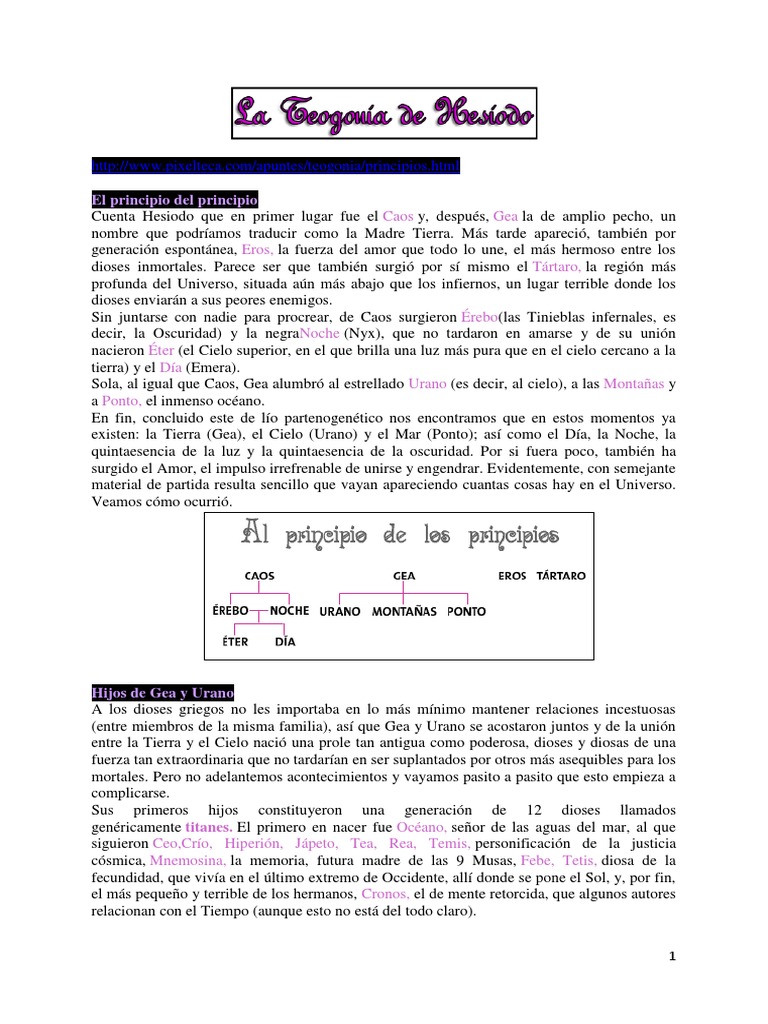 Cuenta Hesiodo que en primer lugar fue el Caos y, después, Gea la de amplio pecho, un